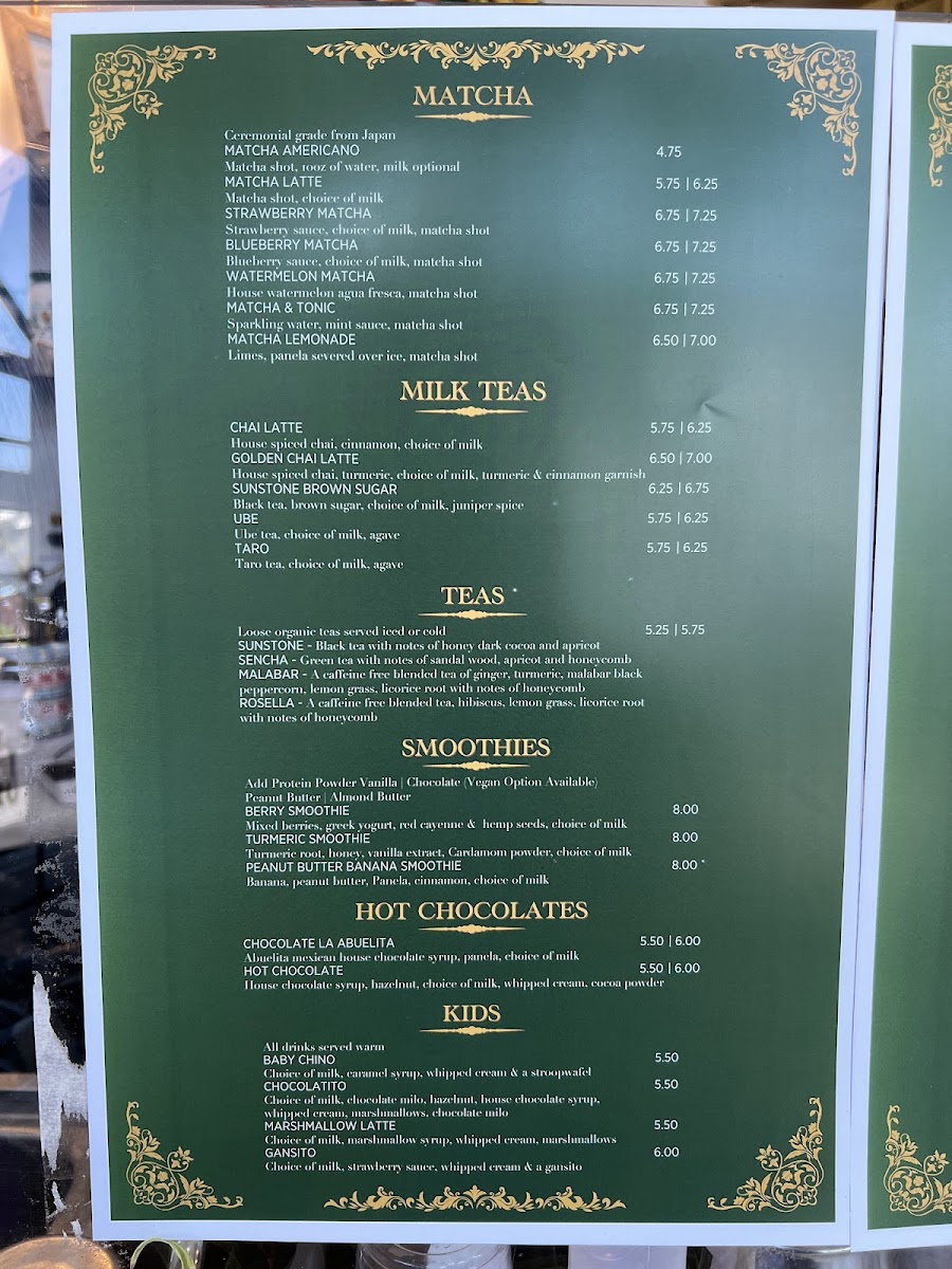 Gitana Drinks - Tea menu