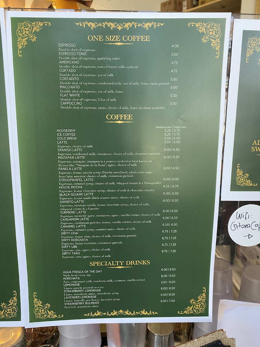 Gitana Cafe Menu (2025 Update)